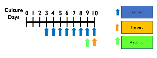 On Day 9 of culture, addition of labeled T4 (0.05 μM, and 0.1 μM rat and human respectively)