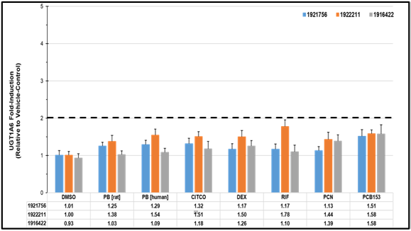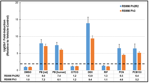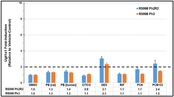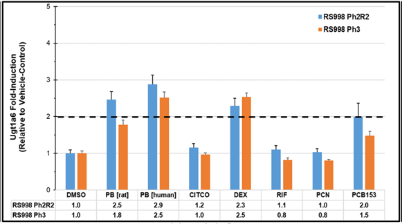 Consistent CYP and UGT gene expression data of known NR agonist among both human and rat species.