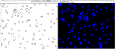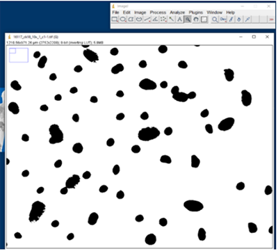 then we analyze particles to count DAPI particles and scale images.